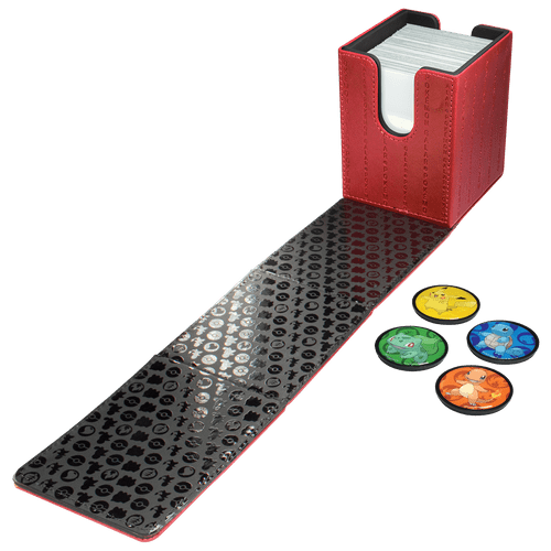 Collect, store, and personalize with the Alcove Click for Pokémon! The Alcove Click comes with four themed badges featuring Charmander, Bulbasaur, Squirtle, and Pikachu. This Deck Box holds up to 100 standard size trading cards double-sleeved in Ultra PRO Deck Protector® sleeves, features a strong magnetic closure, and has dual thumb notches for easy access to your deck. Personalize your Alcove Click by popping on your favorite magnetic badges and replacing them with other badges. badges have a 1.5 in. diameter. This is the perfect accessory for any Pokémon TCG player or collector.