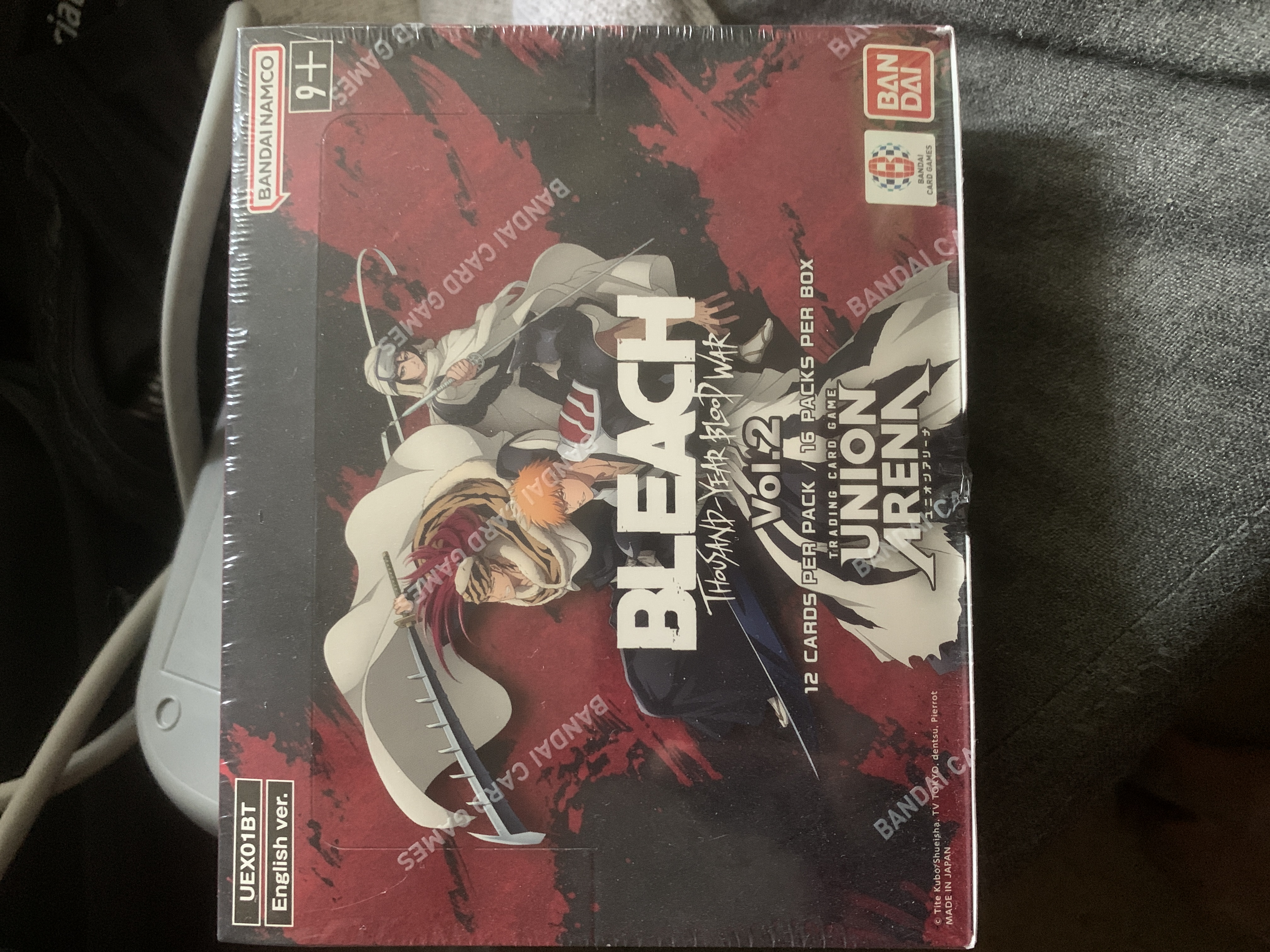 Unleash the power of the Soul Society! The Union Arena Bleach: Thousand-Year Blood War Vol. 2 Booster Box by Bandai brings the action-packed anime to life with 16 booster packs filled with stunning cards. Whether you're a seasoned player or a new collector, this set is a must-have for any Bleach fan.